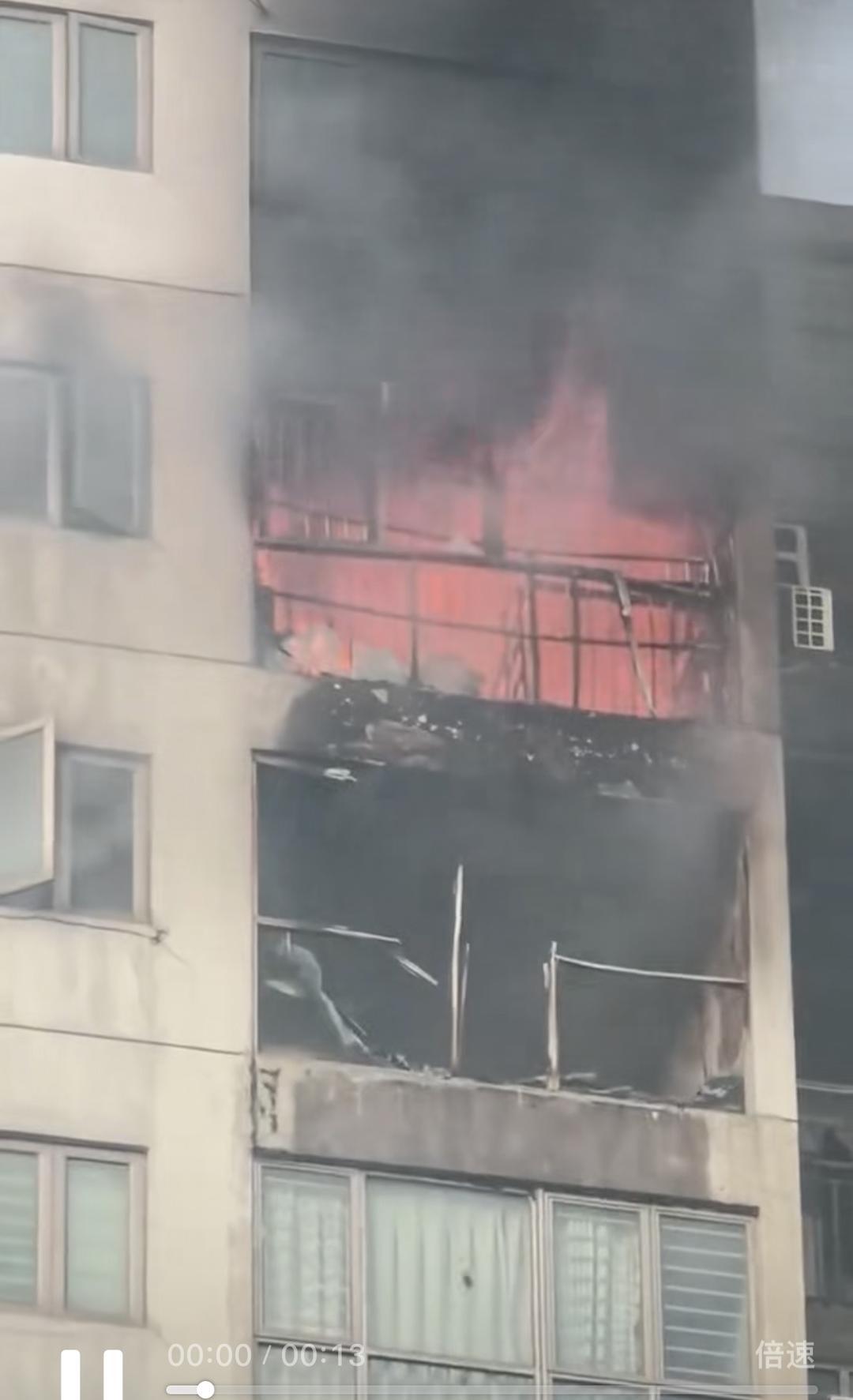 目击者告诉红星新闻,早上,16楼一户起火后,小区来了许多救援车辆,高楼有人员被困,后被消防人员救出。事发后,起火楼层及楼上阳台栏杆几乎被烧毁,墙体被熏得发黑。